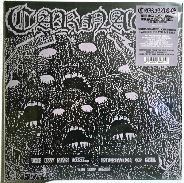 Compilation release of the legendary Swedish death metallers. Raw as fuck harking inevitably to early Carcass and what a good thing that is, this is from their original demo tapes, outtakes plus some live material too. With members who went on to Dismember, Entombed, and Carcass themselves, the heritage of this release is genuine. Double LP with poster and huge retrospective booklet
